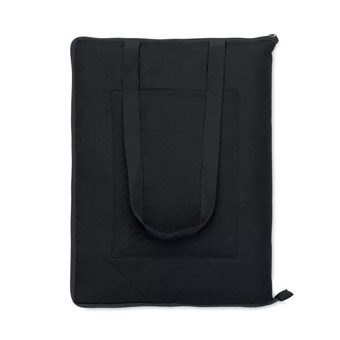 Складное стеганое одеяло для пикника с пластиковым покрытием PEVA на обратной стороне. Складывается в удобную сумку-тележку и имеет регулируемый плечевой ремень. Имеет большой передний боковой карман.
