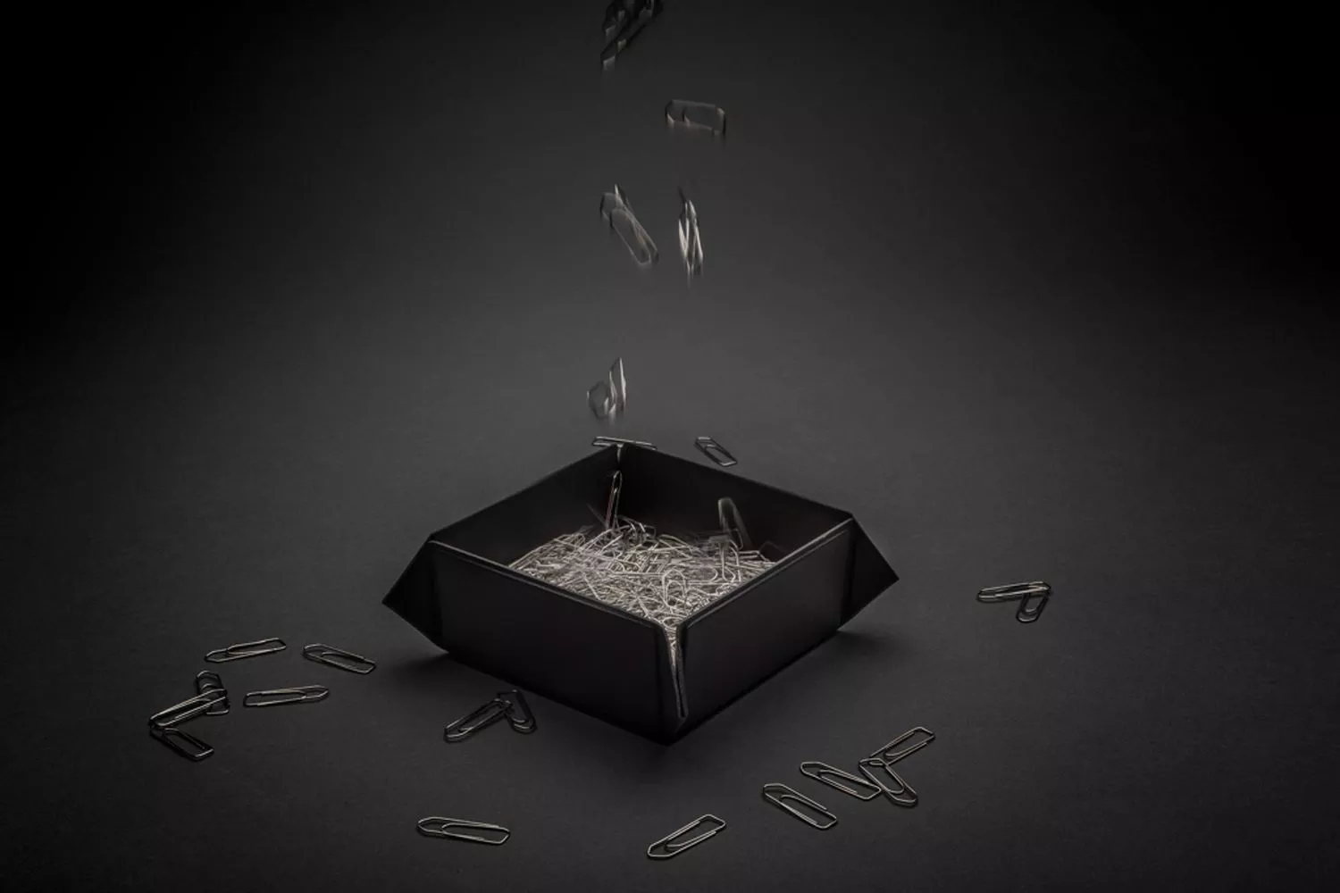 Со складным контейнером поддерживать порядок станет проще. Он небольшой и идеально подходит для рабочего стола, прикроватной тумбочки или прихожей. Любите минимализм? Эта вещь для вас: контейнер выглядит стильно и строго, он однотонный, глубокого черного цвета. Контейнер оснащен магнитами и хорошо держит форму, а если вам понадобится его убрать, он не займет много места в ящике. Изготовлен из переработанного полиуретана и поставляется в крафтовой упаковке, сертифицированной FSC®. Сертифицировано RCS. Эта сертификация полностью контролирует путь поставок переработанных материалов и гарантирует их наличие в изделии.