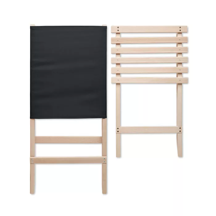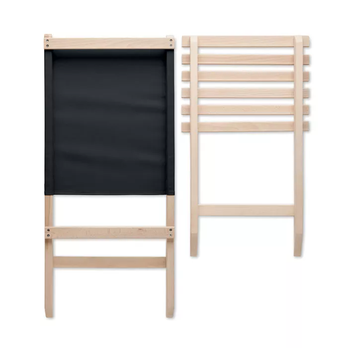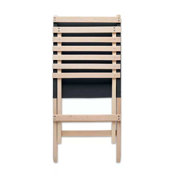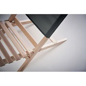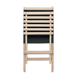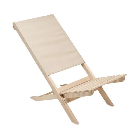 Foldable beach wooden chair with low profile sitting. Polyester fabric back seat. Max: weight 95 kg. Made in EU. This item can only be delivered in multiples of outer carton quantity which is 2 pieces.