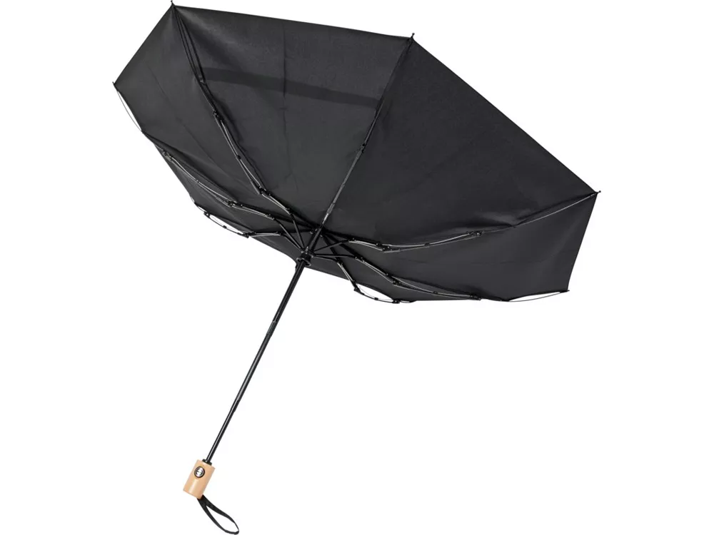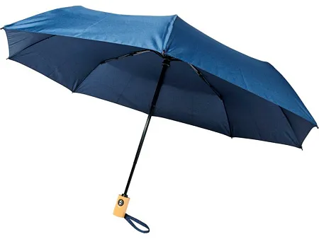 Автоматически открывающийся/закрывающийся зонт Bo из переработанного ПЭТ-пластика. Куполом из эпонж полиэстера и переработанного ПЭТ-пластика. Прочный металлический стержень, высококачественная рама со спицами из стекловолокна, обеспечивающая максимальную гибкость в ветреную погоду. Поставляется с чехлом и может легко поместиться в сумку или рюкзак для удобного ношения.