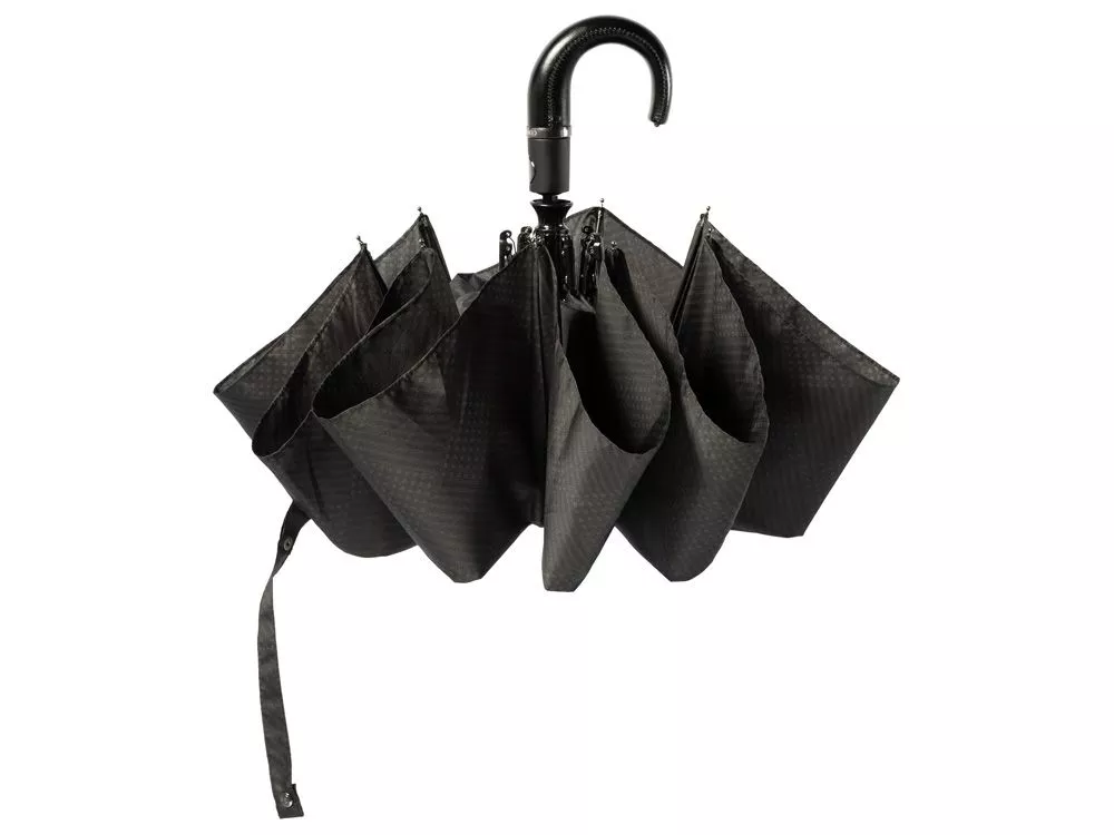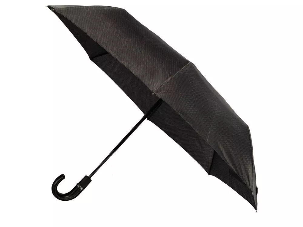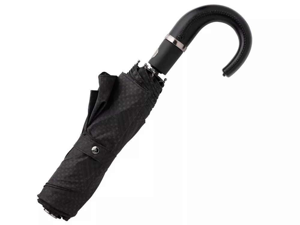 Зонт Horton выглядит очень элегантно и стильно. Ручка зонта обтянута красивой тканью с легкой текстурой, напоминающей кожу. Купол украшен строгим принтом в стиле бренда CERRUTI 1881.