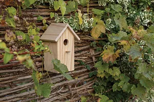 Помогите птицам обрести дом. Диаметр входного отверстия 33 мм, что идеально подходит для синиц, воробьев, мухоловок-пеструшек и поползней. Скворечник изготовлен из древесины сосны, сертифицированной FSC®. Сбоку есть дверца, при помощи которой скворечник легко чистить, а сзади — отверстие для крепления. Поставляется в крафтовой упаковке.