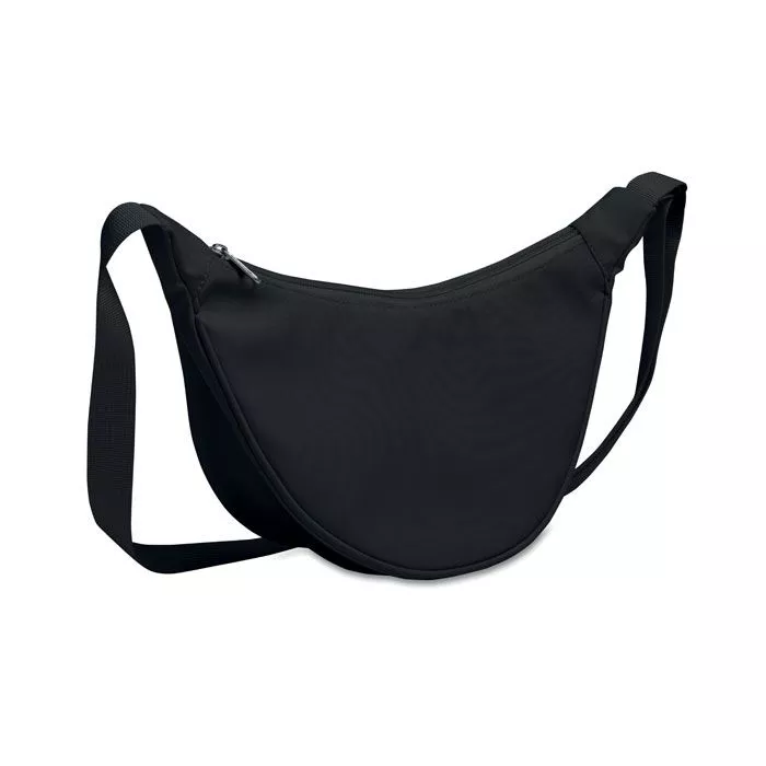 Half moon shaped cross body bag in 400D Oxford and 210D RPET lining. One main zippered pocket and 2 inside pockets.