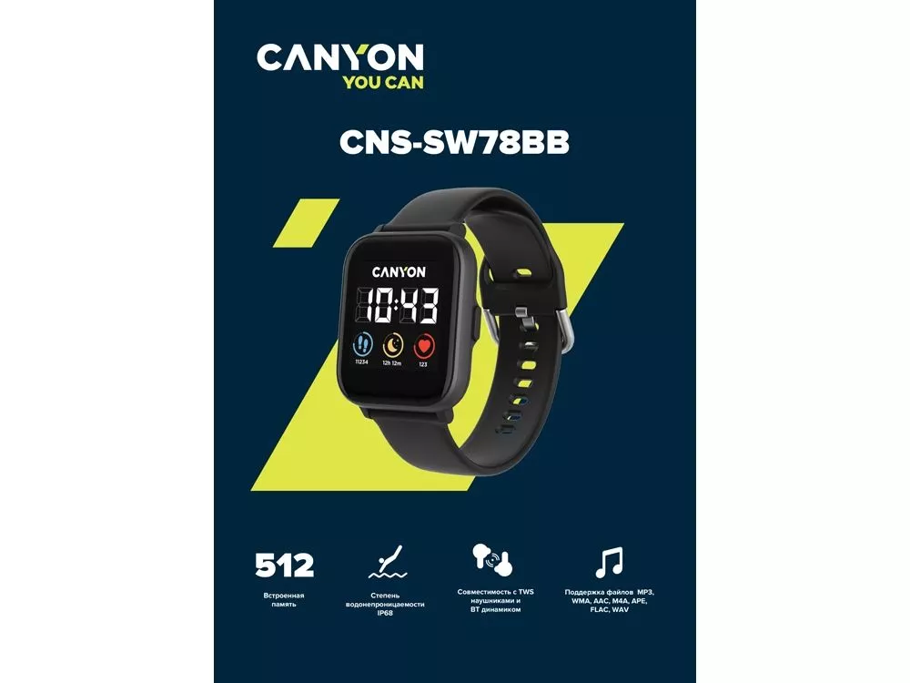 Вам больше не нужен смартфон для прослушивания любимых треков! Эти смарт-часы имеют встроенный плеер с памятью 512 мегабайт. А батарея рассчитана на 6 часов беспрерывного прослушивания музыки. Встроенный плеер поддерживает множество аудио форматов и отображен на циферблате. Часы подключаются к Bluetooth-наушникам, либо внешнему Bluetooth-динамику. Благодаря полной водонепроницаемости они пригодны для плавания. Соединившись со смартфоном, этот смарт-гаджет копирует в приложение Canyon Life статистику шагов и отображает все необходимые уведомления из соцсетей и мессенджеров. - встроенный аудиоплеер - прямое подключение к Bluetooth-аудиоустройствам - 512 мегабайт встроенной памяти - сенсорный экран - степень водонепроницаемости IP68 (полная защита) - быстрый и стабильный Bluetooth 5.0 - синхронизация со смартфоном через приложение Canyon Life - совместимы с iOS 12.0+, Android 6.0+ - оптимизация под наиболее популярные виды спорта - управление музыкой на циферблате - USB-кабель для зарядки - 6 часов беспрерывной работы плеера - до 12 дней работы в режиме ожидания - соответствие европейским стандартам GDPR