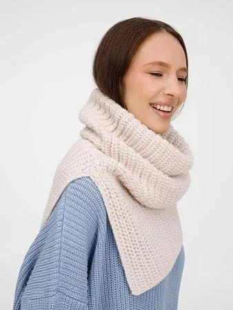 Мягкая пряжа с выразительной фактурной вязкой создает объем без лишней тяжести, даря тепло в прохладную погоду. Разрез от середины снуда расширяет возможности стилизации: его можно драпировать асимметрично или создавать оригинальные многослойные образы. Сдержанный дизайн и универсальная цветовая палитра делают его идеальным дополнением к пальто или куртке.