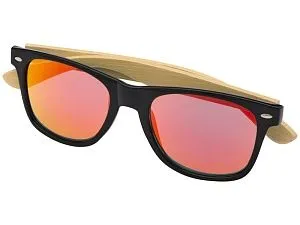 Стильные солнцезащитные очки с цветными линзами и бамбуковыми дужками. Линзы УФ 400 обеспечивают защиту от вредного ультрафиолетового излучения. Соответствует стандарту безопасности ЕС EN12312-1. Бамбуковое дерево, Пластик PC.