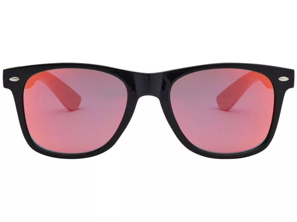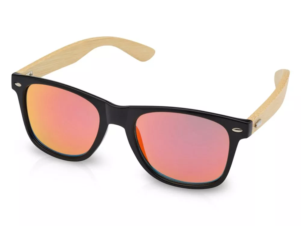 Стильные солнцезащитные очки с цветными линзами и бамбуковыми дужками. Линзы УФ 400 обеспечивают защиту от вредного ультрафиолетового излучения. Соответствует стандарту безопасности ЕС EN12312-1. Бамбуковое дерево, Пластик PC.