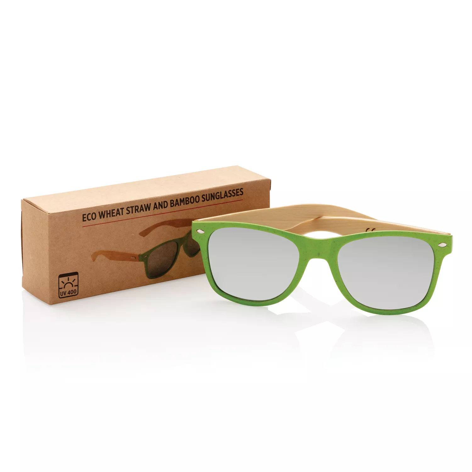 Солнцезащитные очки с оправой из волокна пшеничной соломы и дужками из бамбука. Поставляются в упаковке из крафт-бумаги. Линзы с максимальной защитой UV400.