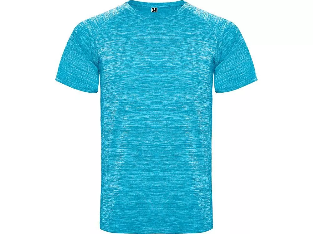 Спортивная футболка из полиэстерового полотна с рукавом реглан. Круглый вырез горловины. Легко сохнущее дышащее полотно с красивым меланжевым эффектом.