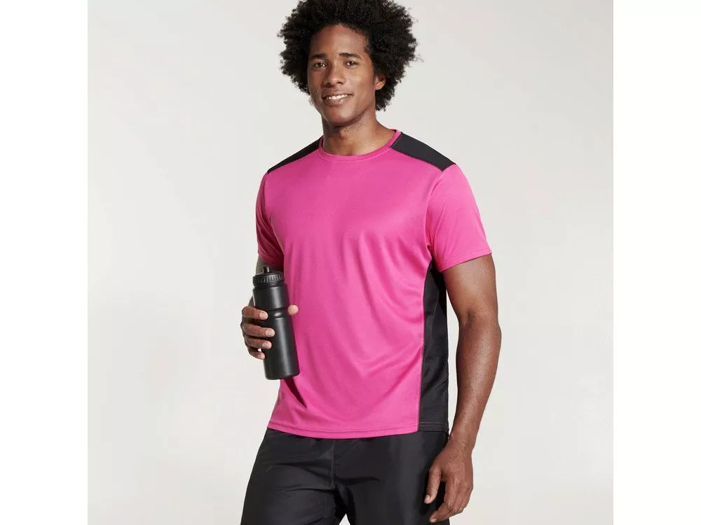 Футболка с коротким рукавом из технологичного полотна. Круглый вырез горловины. Структурное полотно на полочке, и дышащее 3D сетчатое полотно на спинке отлично впитывает влагу. Декоративная зиг-заг отстрочка по плечам и боковым швам. Спинка немного длиннее В ассортименте так же представлена аналогичная детская модель Detroit.