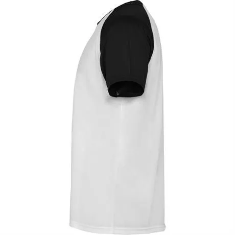 Спортивная футболка с контрастными рукавами реглан. Контрастная круглая горловина с усиленными закрытыми внутренними швами. *Дышащая ткань
