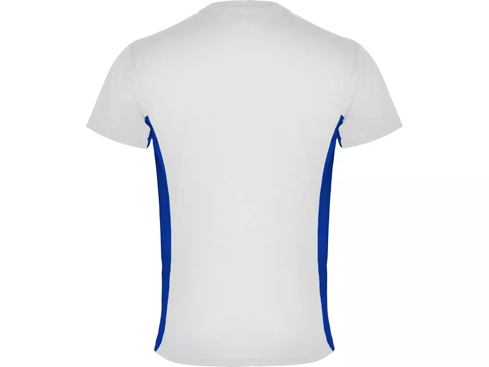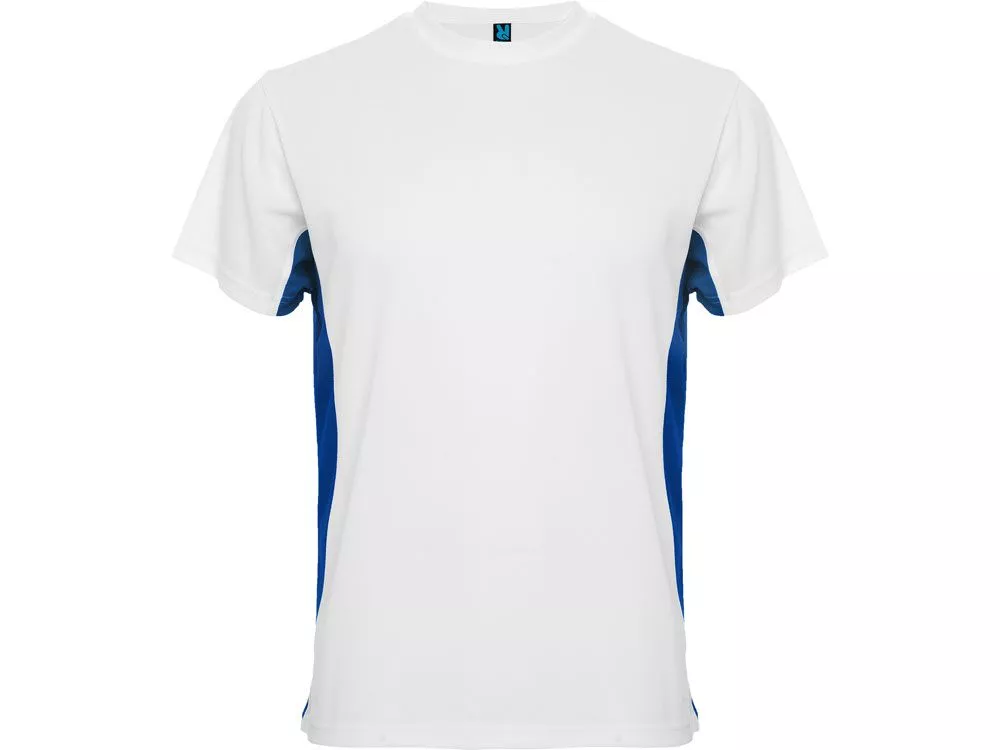 Спортивная футболка из технологического полотна и колорблок вставками. Круглый вырез горловины укреплен тесьмой. Контрастные вставки по бокам. Дышащее технологичное полотно - легко стирается и быстро сохнет.
