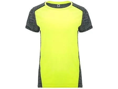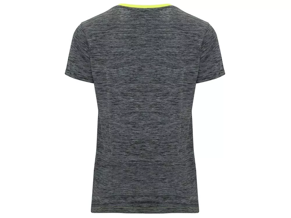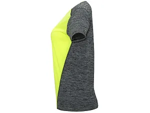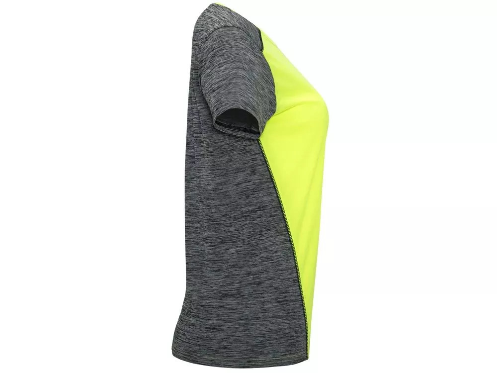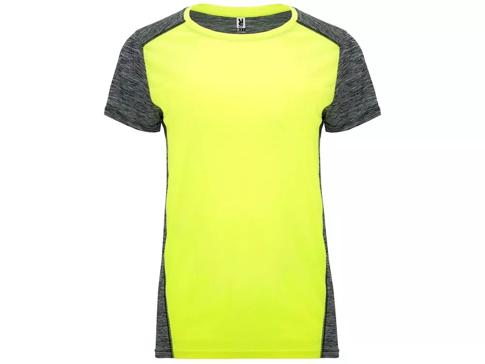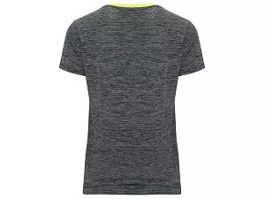 Футболка с коротким рукавом из технологического полотна. Круглый вырез горловины. Комбинация двух полиэстеровых полотен. Основное полотно на полочке со структурой, дополнительное полотно на спинке, рукавах и плечах с меланжевым эффектом. Задняя часть немного длиннее. Легко сохнущее дышащее полотно. В ассортименте так же присутствует аналогичная мужская и детская модели Zolder