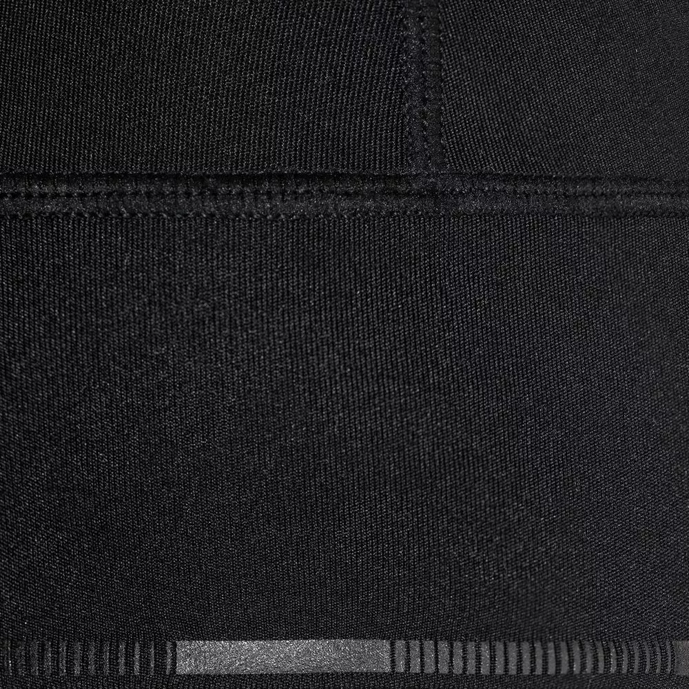 Шапка выполнена в черном цвете, но имеет светоотражающую полосу вдоль края, что улучшает видимость спортсмена в условиях плохой освещенности.