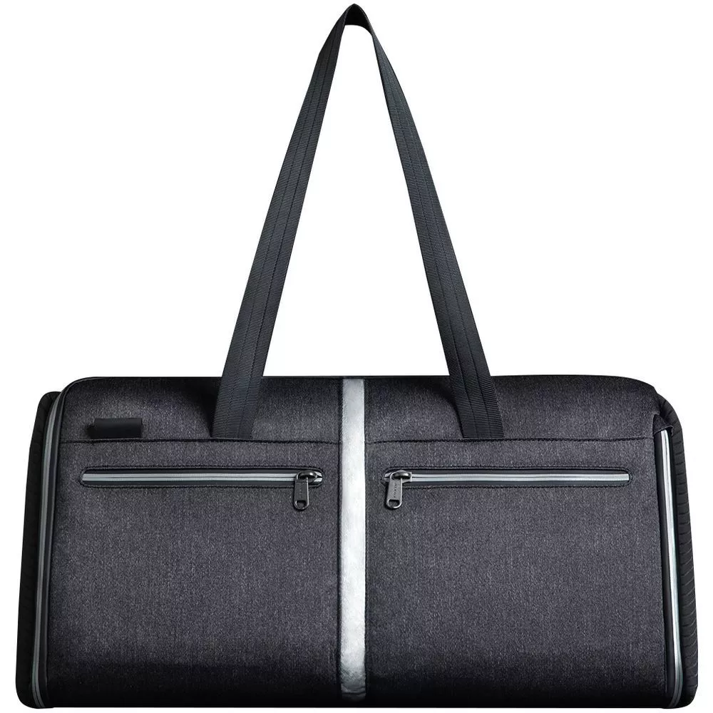 Благодаря единой молнии, идущей по всей сумке, она складывается в пришитый чехол, поэтому не займет много места в багаже или в шкафу.