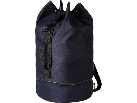 Водонепроницаемый спортивный вещмешок из переработанного РЕТ-пластика с вместительным 20 основным отделением объемом 20 литров, застежкой на шнурке, боковой ручкой и регулируемым плечевым ремнем. Также имеет отдельное нижнее отделение на молнии для небольших предметов.