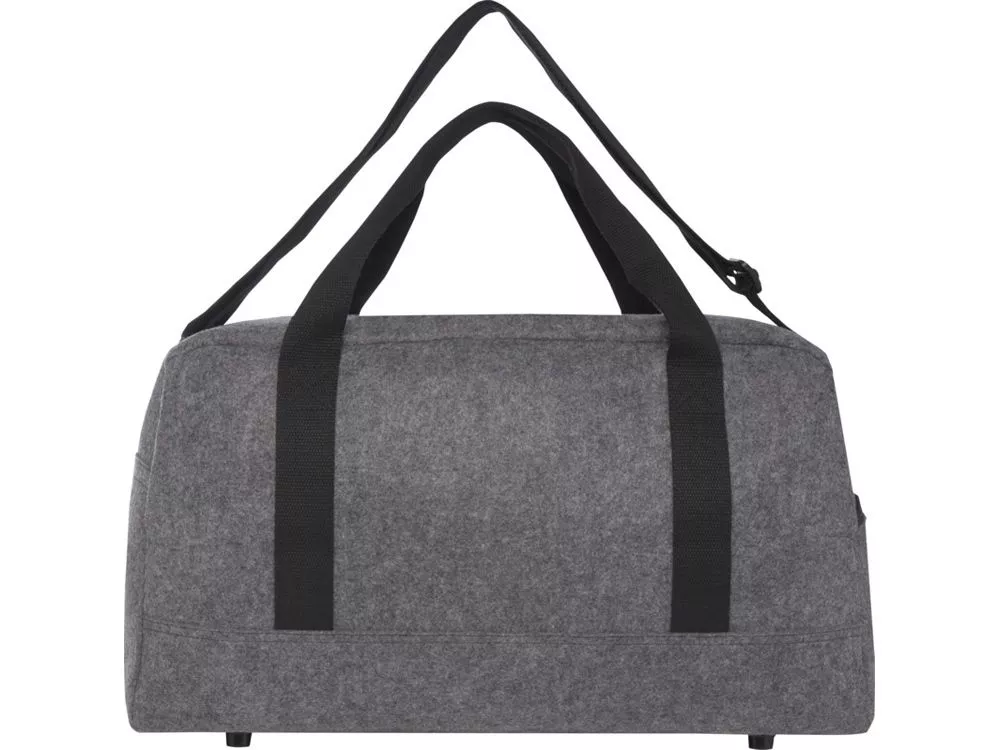 Многоцелевая спортивная сумка из мягкого и прочного высококачественного переработанного фетра, сертифицированного согласно GRS. Имеет большое основное отделение, передний карман на молнии, боковой карман, съемные и регулируемые плечевые ремни и удобные хлопковые ручки для различных способов переноски. Сумка оснащена небольшими ножками/шпильками в нижней части, которые удерживают ее немного приподнятой над землей, помогая предотвратить попадание грязи или влаги на сумку.