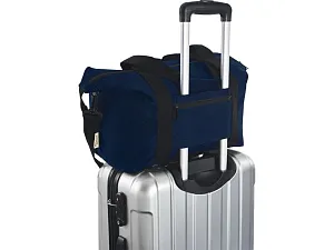 Изготовленная из высокопрочных экологичных материалов, брезента и подкладки из переработанного ПЭТ, соответствующих стандарту GRS, спортивная сумка Joey объемом 25 л имеет просторное главное отделение на молнии и внутренний карман на молнии для безопасного хранения. Сумка также имеет 1 открытый передний карман и еще один задний карман на ремне с застежкой на молнии для тележки, и может переноситься как с помощью усиленных вязаных ручек, так и с помощью отсоединяемого регулируемого ремня на плечо. Декоративная металлическая пластина может придать логотипу сияние благодаря утонченному матовому покрытию.