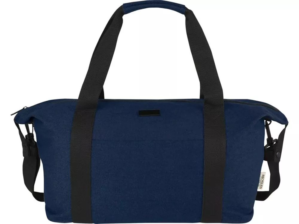 Изготовленная из высокопрочных экологичных материалов, брезента и подкладки из переработанного ПЭТ, соответствующих стандарту GRS, спортивная сумка Joey объемом 25 л имеет просторное главное отделение на молнии и внутренний карман на молнии для безопасного хранения. Сумка также имеет 1 открытый передний карман и еще один задний карман на ремне с застежкой на молнии для тележки, и может переноситься как с помощью усиленных вязаных ручек, так и с помощью отсоединяемого регулируемого ремня на плечо. Декоративная металлическая пластина может придать логотипу сияние благодаря утонченному матовому покрытию.