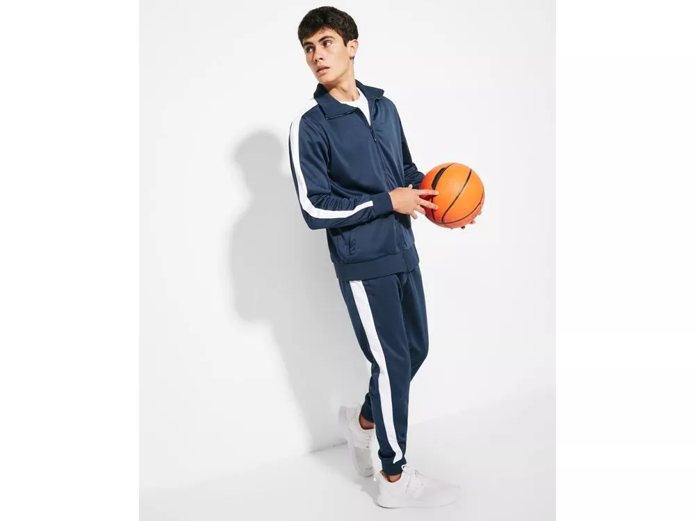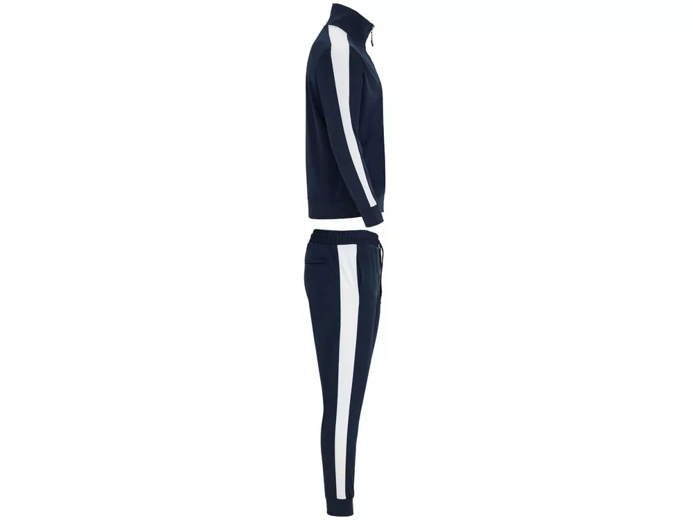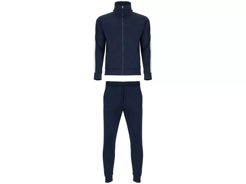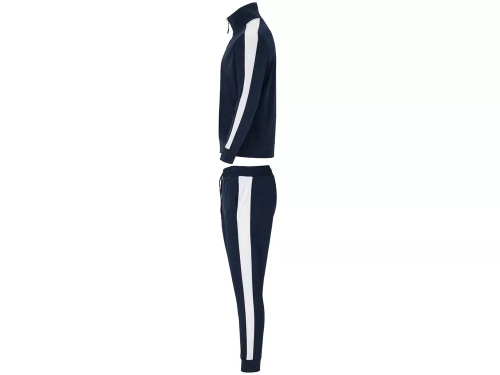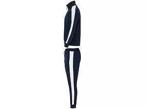 Cпортивный костюм с олимпийкой и брюками. - Высокий воротник. - Горловина, манжеты и низ из риба 1 x 1. - Молния по центру в тон с бегунком. - Боковые карманы кофты на молнии. - Контрастные лампасы по бокам. - Брюки с эластичным поясом со шнурком для регулировки по талии, двумя боковыми карманами. - Карман сзади на молнии. - Низ с эластичными манжетами из риба 1 x 1.
