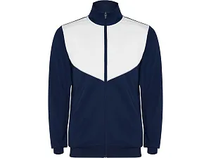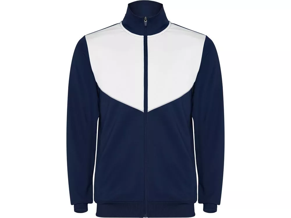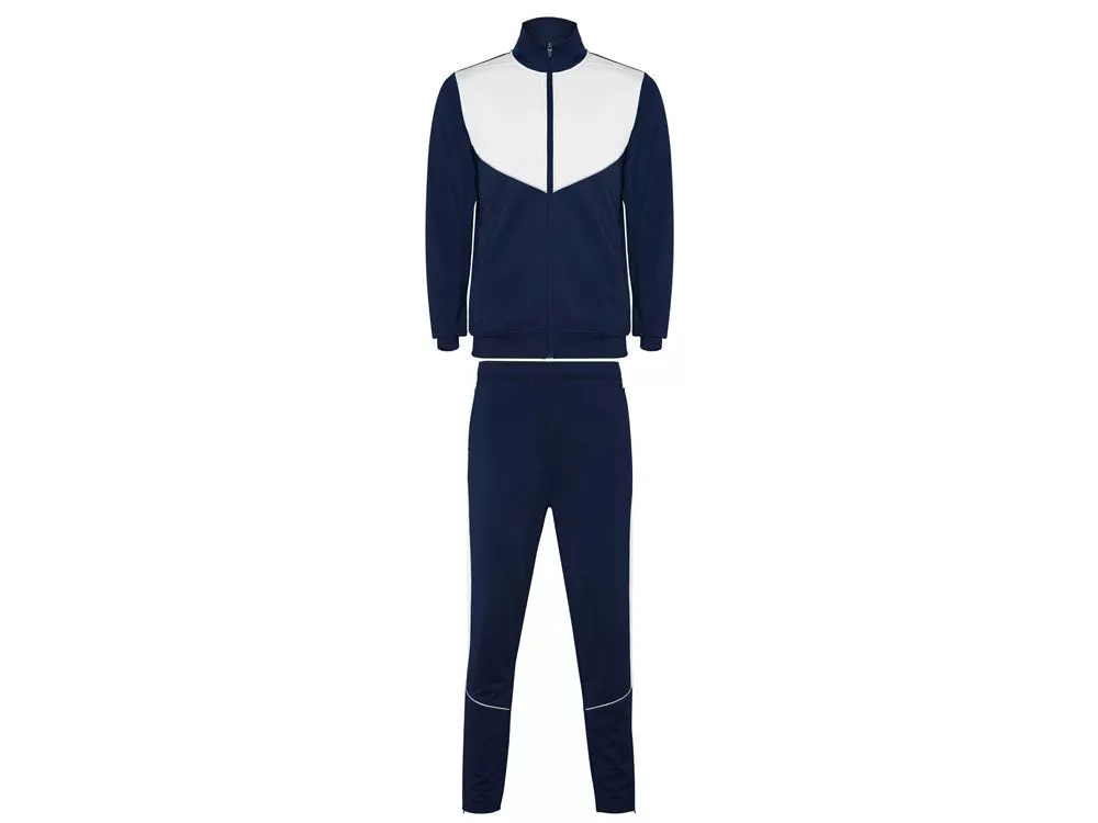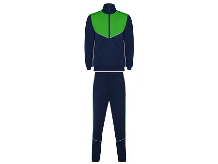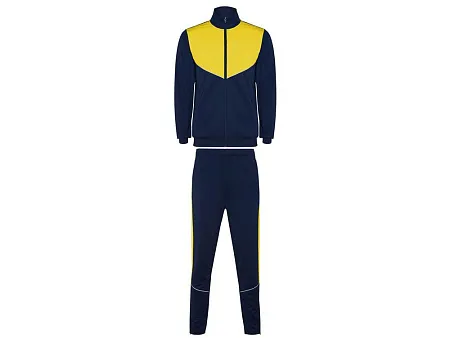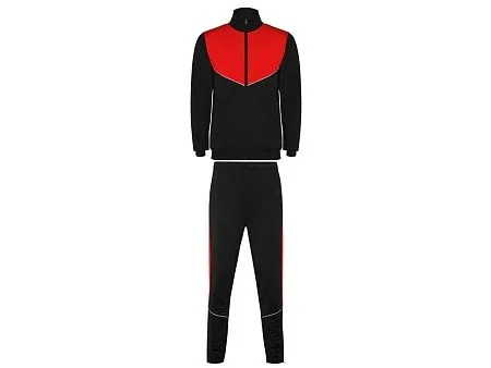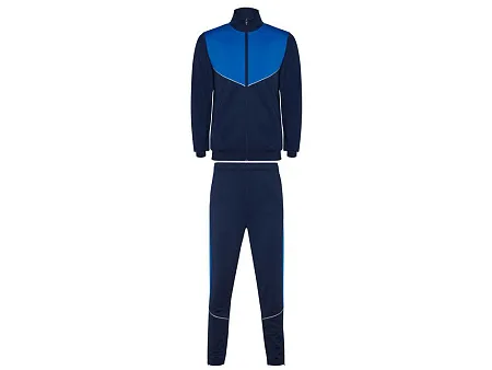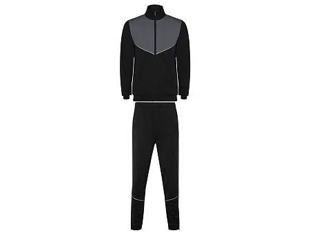 Спортивный костюм из облегченного и эластичного материала. - куртка с контрастными вставками и кантами - высокий воротник с контрастами строчками - центральная молния - боковые карманы - риб 2х2 на манжетах и низу - контрастные боковые части с кантами - молнии по низу - брюки на эластичном поясе со шнурками
