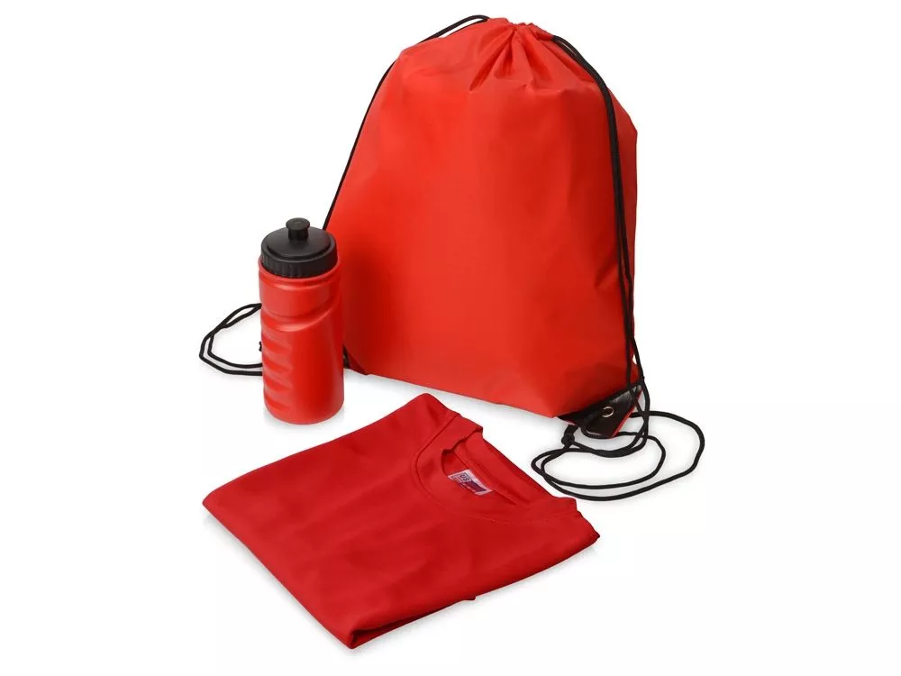 Спортивный набор состоящий из футболки, спортивной бутылки и удобного рюкзака. Трафаретная печать (1 цвет (лучшая цена!) *) на данный товар осуществляется бесплатно. Оплачивается только настройка оборудования в размере 1500 рублей на весь тираж.
