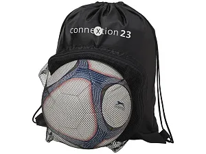 Спортивный рюкзак, стягивающийся вверху шнуром. Большое основное отделение с кулиской. Сетчатое отделение на молнии спереди для футбольного мяча. Трафаретная печать (1 цвет (лучшая цена!) *) на данный товар осуществляется бесплатно. Оплачивается только настройка оборудования в размере 4700 рублей на весь тираж.
