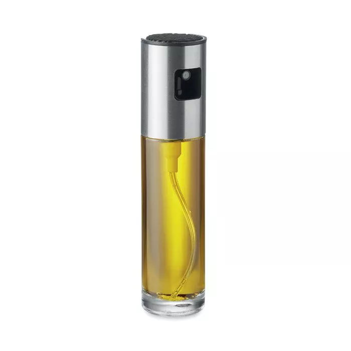 Стеклянный спрей-дозатор для масла с крышкой из нержавеющей стали. Емкость: 100 мл.