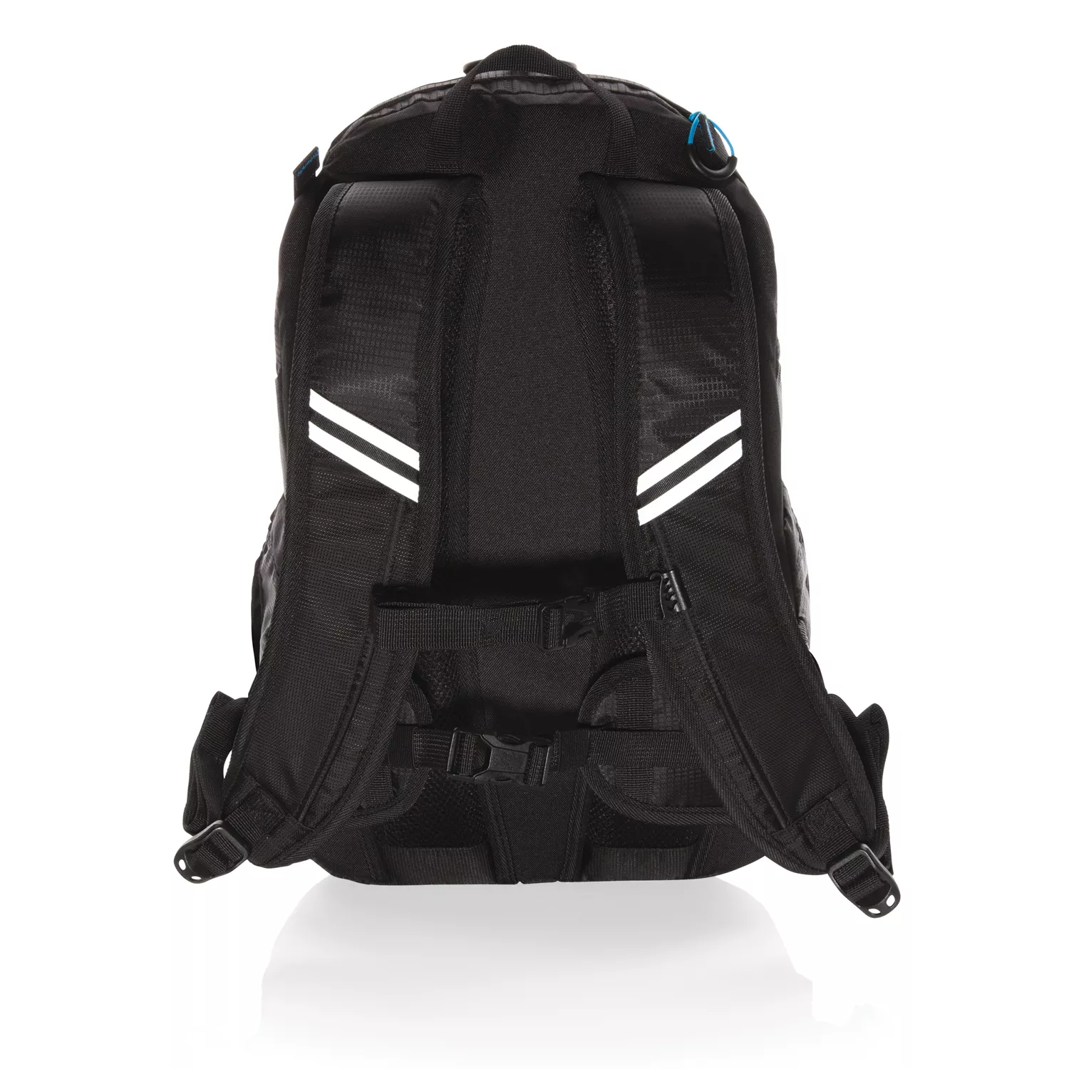 Спортивный рюкзак для бережного хранения ваших вещей. Сделан из прочной ткани, оснащен внутренними и внешними карманами, а также сетчатой спинкой для максимально удобного использования. В рюкзаке есть отделение для ноутбука диагональю до 15,4”. Специальный чехол защитит ваши вещи от дождя. Минималистичный спортивный дизайн с яркими деталями. Не содержит ПВХ.