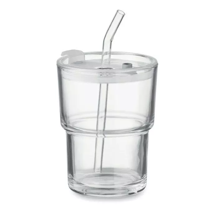 Стеклянный стакан с герметичной крышкой и съемной стеклянной соломинкой. Объем 300 мл.