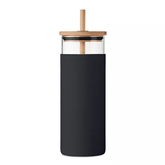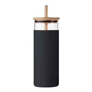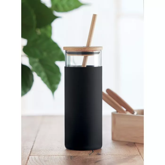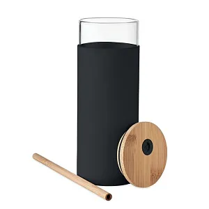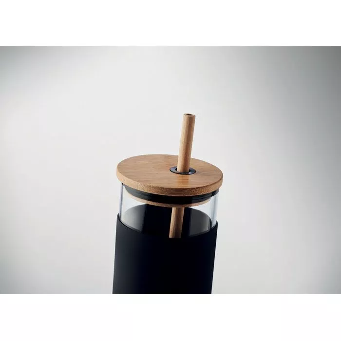 Стакан из боросиликатного стекла с силиконовым защитным чехлом, бамбуковой крышкой и соломинкой. Емкость: 450 мл. Поскольку это кружка одностенная, она нагревается