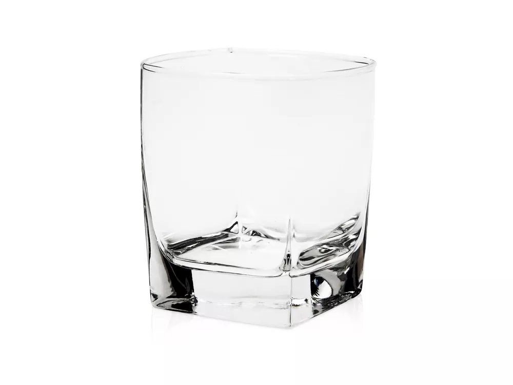 Стакан с четырьмя скругленными гранями. Для виски и других крепких напитков. Объем 300мл. Тампопечать (1 цвет (цветные изделия)) на данный товар осуществляется бесплатно. Оплачивается только настройка оборудования в размере 2300 рублей на весь тираж.