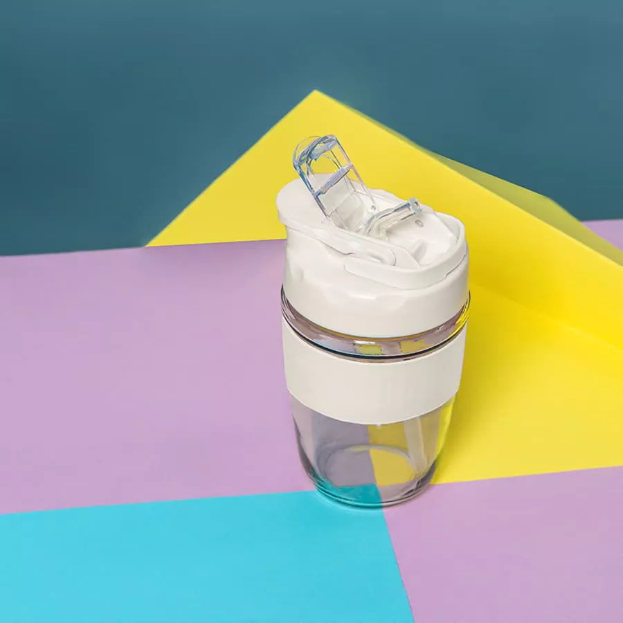 Стеклянный стакан EASY nbsp;с крышкойСиликоновая манжета, чтобы было удобно держать в рукеКрышка с двумя клапанами: можно пить через отверстие, а можно – через трубочку, кому как нравится J Индивидуальная упаковка - коробка из крафтового картона