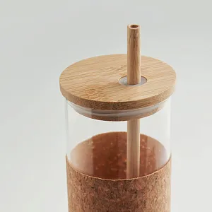 Стакан из боросиликатного стекла с пробковой защитной манжетой, бамбуковой крышкой и соломинкой. Емкость 450 мл. Поскольку стакан одностенный, теплопередача может происходить.