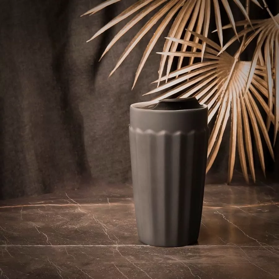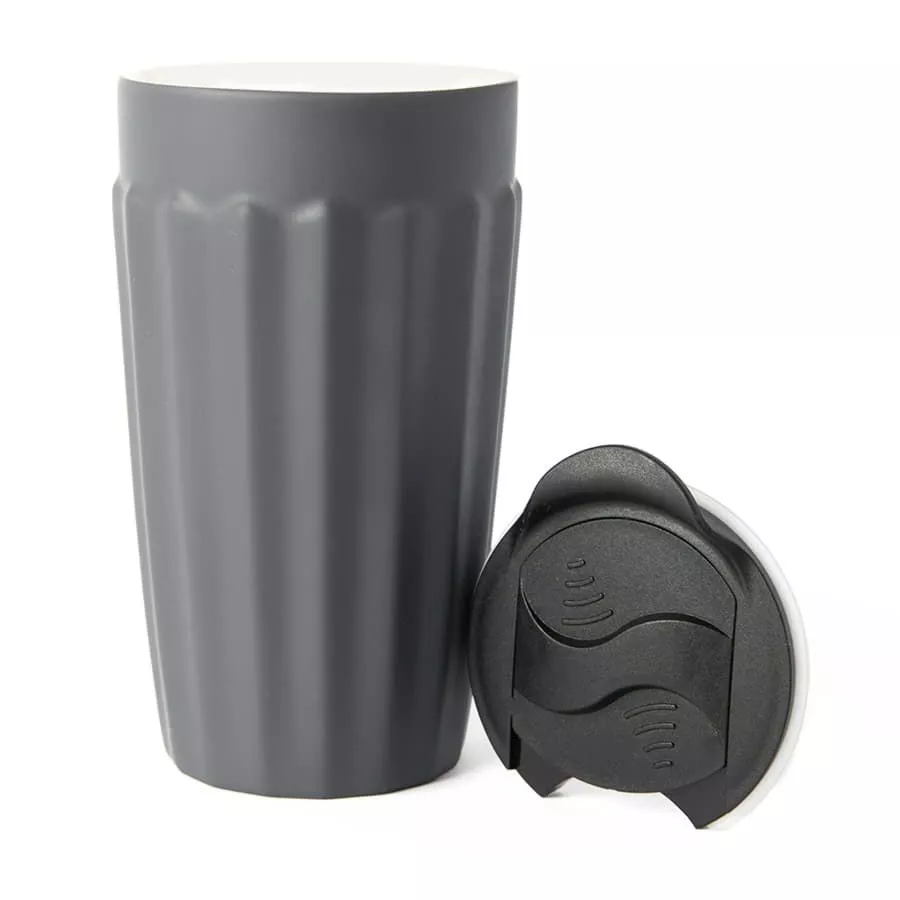 Керамический стакан с двойными стенками, имеет необычную форму с гранямиКорпус имеет прорезиненное покрытие, оно отлично подходит для лазерной гравировки: изображение получается ярким и выделяющимсяПластиковая крышка с силиконовым уплотнителем не даст вашему напитку быстро остытьЦвет близкий к Pantone 433UИндивидуальная упаковка - коробка из крафтового картона