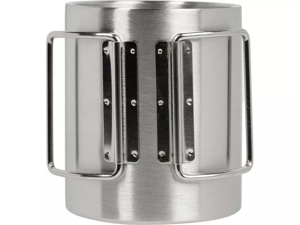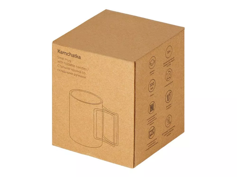 Kamchatka — идеальный и практичный вариант кружки для походов и длительных поездок: имеет небольшой вес и универсальный объём (300 мл), изготовлена из прочного материала (нержавеющая сталь). Необычная конструкция ручки делает кружку компактной и позволяет экономить место в рюкзаке или сумке — ручка оборачивается вокруг корпуса кружки. Kamchatka защитит руки от горячих напитков и не даст обжечься — кружка изготовлена по технологии double wall (двойные стенки). Только для ручной мойки и не подходит для посудомоечных машин. Также нельзя помещать кружку в микроволновые печи. - объём 300 мл; - изготовлена из нержавеющей стали; - складная ручка; - компактная; - не подходит для посудомоек; - нельзя использовать в микроволновках. Гравировка (оптоволоконный лазер) (Без чернения) на данный товар осуществляется бесплатно. Оплачивается только настройка оборудования в размере 1000 рублей на весь тираж.