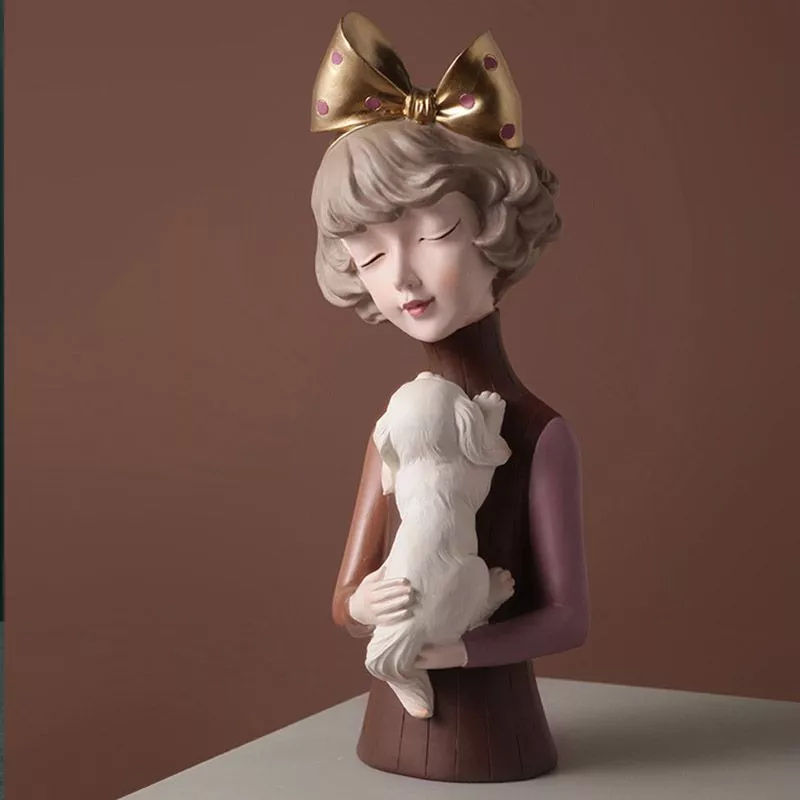 Статуэтка "Девушка со щенком" выполнена из полирезины.Такая статуэтка выглядит красиво и натурально, она станет приятным украшением интерьера или подарком для любителей животных.