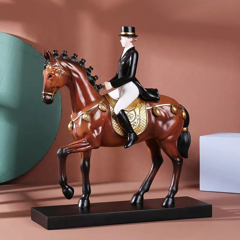 Статуэтка "Наездница и лошадь" — это изящная декоративная фигура, изображающая женщину-наездницу, сидящую на лошади.Эта статуэтка отлично подойдет для украшения интерьера, особенно в стиле классика или кантри, и станет символом грации, силы и гармонии между человеком и животным.