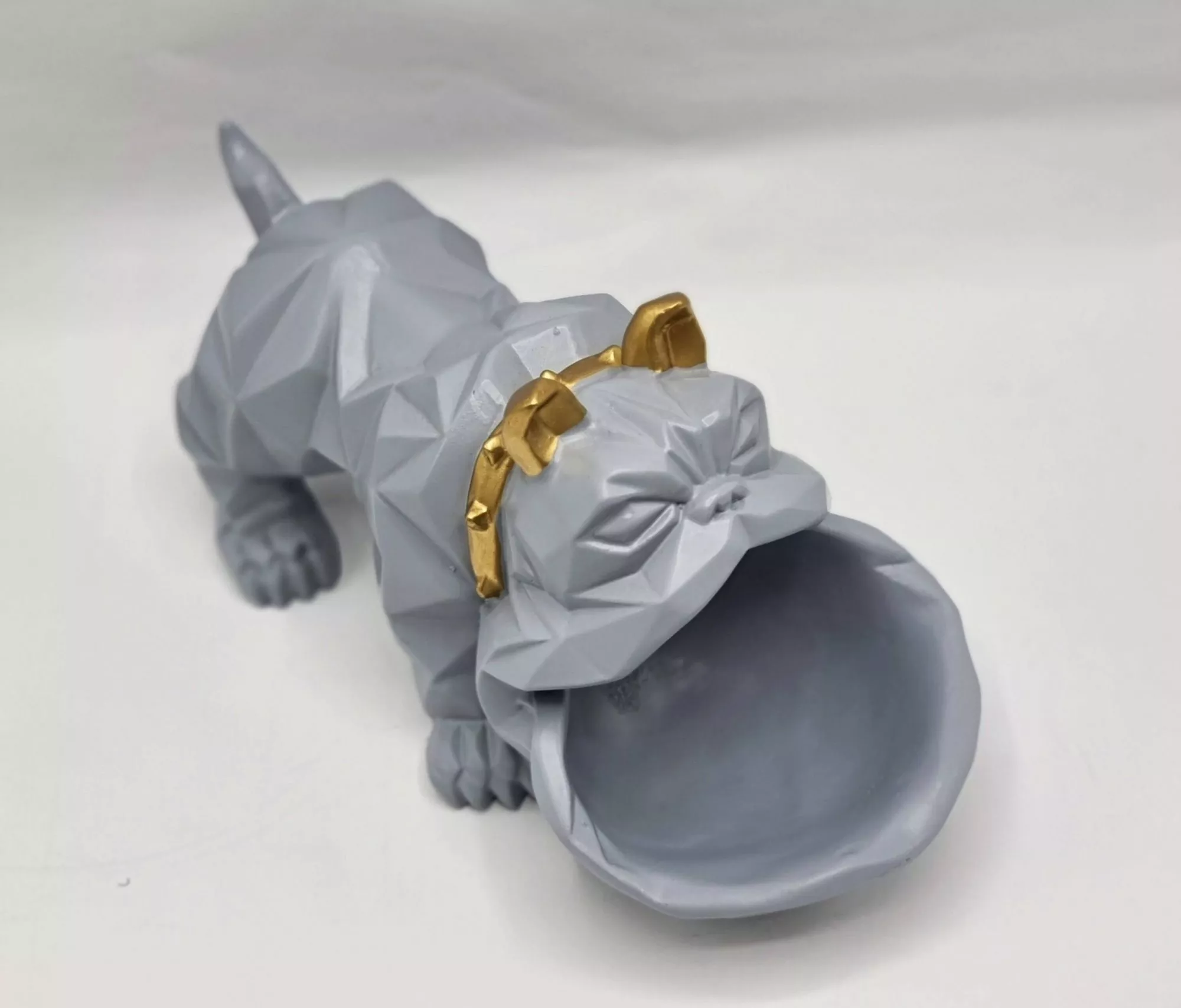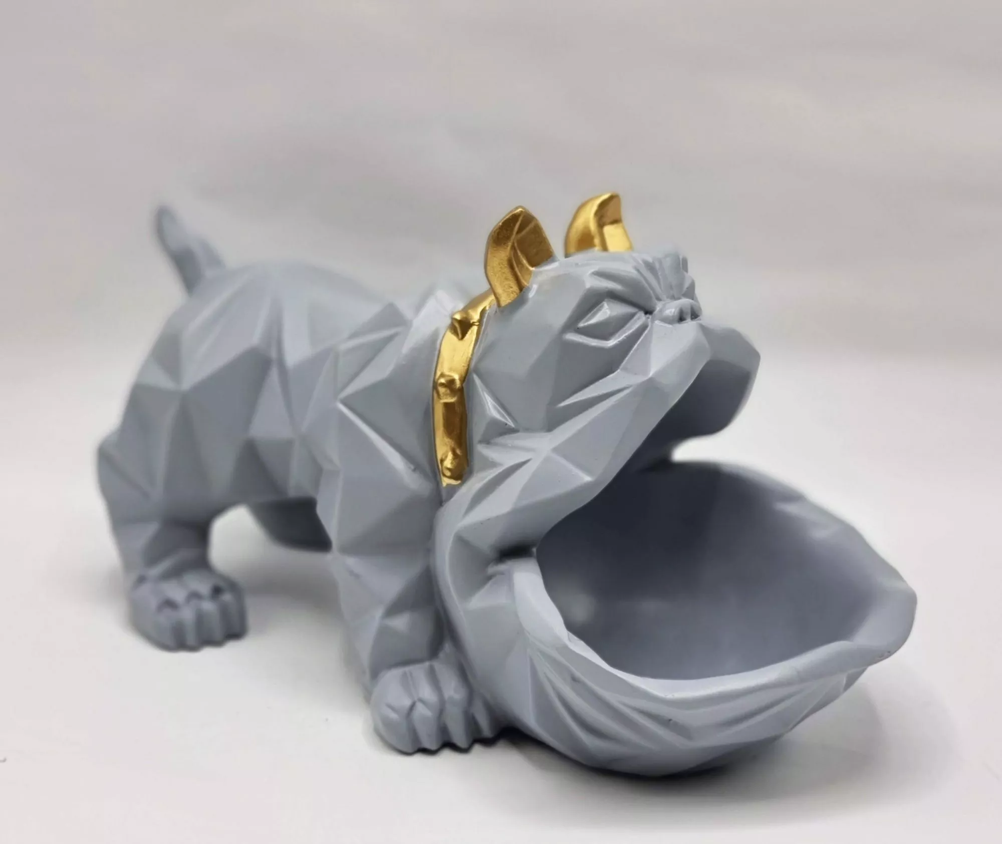 Хранитель мелочей Бульдог - стильная вещица для украшения современного интерьера. Статуэтка сделана из современного полимерного материала, из которого производят прочные и долговечные изделия домашнего обихода. Бульдог будет охранять все, что вы доверите ему. Это могут быть: ключи, украшения, конфетки и многое другое. Эта вещица станет прекрасным подарком друзьям, людям с нестандартными взглядами на стиль, тем, кому до боли надоели плавные линии. А если в качестве подарка пока не нужен - просто порадуйте себя стильной и новой в современном мире вещью.