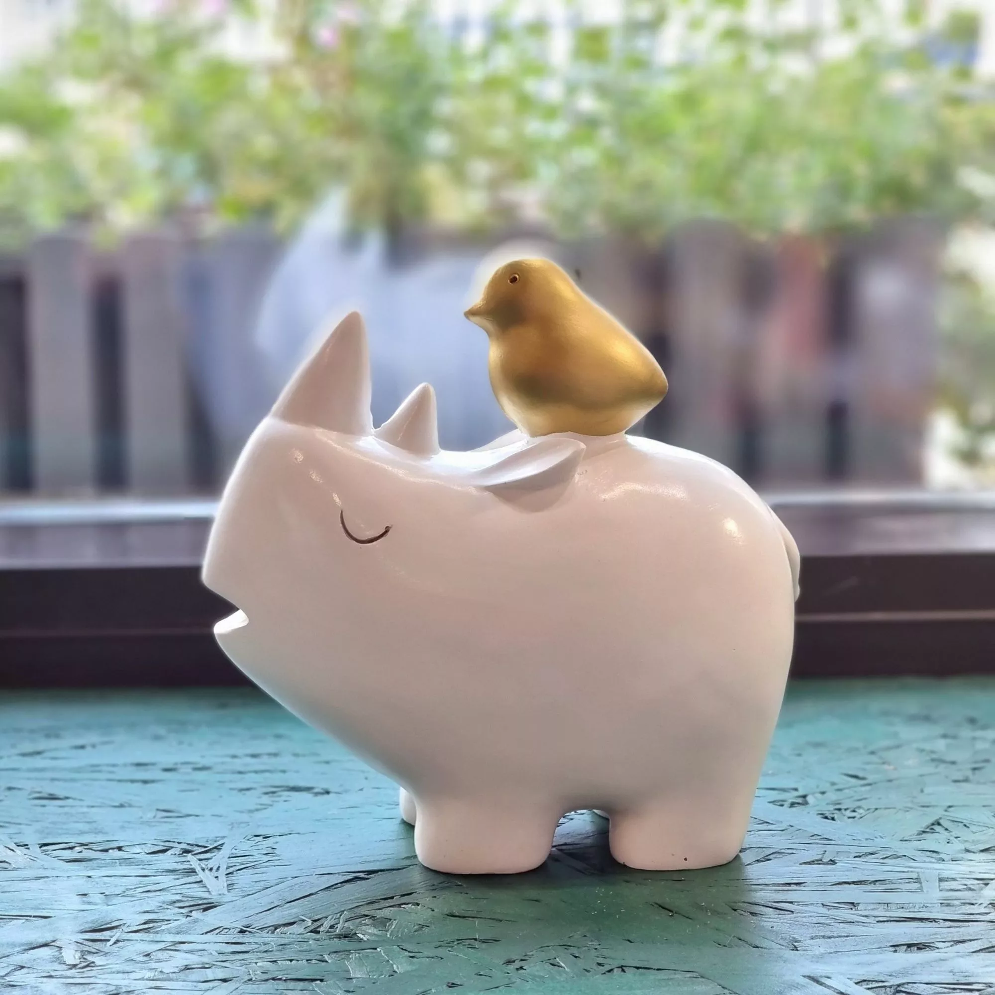 Статуэтка "Носорог и пеночка" — это яркая и выразительная фигурка, изображающая носорога и маленькую пеночку (птицу), символизирующих силу и нежность.Такой набор отлично подойдет для украшения интерьера.