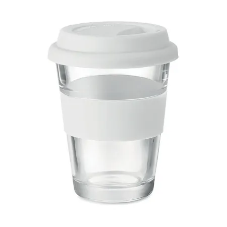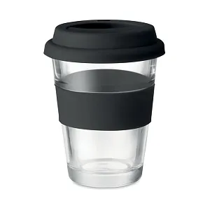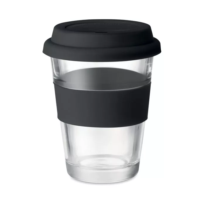 Стеклянный стакан с силиконовой крышкой и ободком. Емкость 350 мл. Поскольку это одностенная кружка, она нагревается.