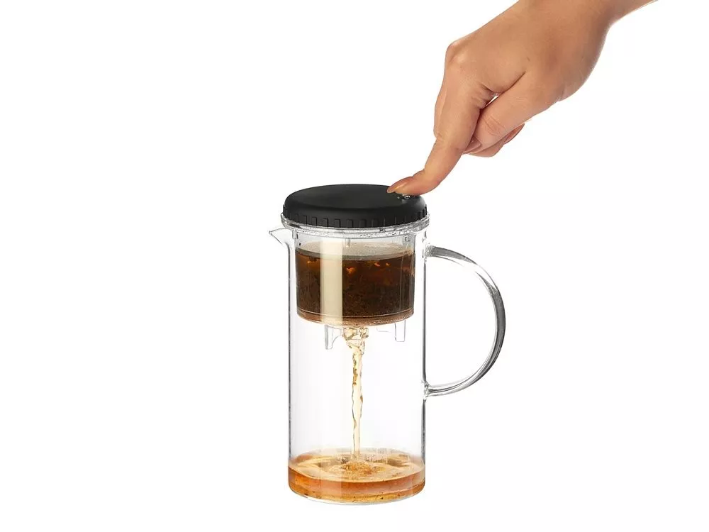 Конструкция заварочного чайника Gunfu от Eat&Bite позволяет очень тонко управлять крепостью получаемого чая, с ним вы можете не переживать о том, что напиток перезаварится. Gunfu оснащен двумя колбами: внутренняя поменьше с ситом — для заваривания и внешняя большая — для уже заваренного чая. В крышке чайника есть кнопка, при нажатии на которую, заваренный чай переливается в большую колбу. Чайник обязательно понравится любителям китайских чайных церемоний, где чаи нужно заваривать многократно в течение определённого времени — здесь просто нужно будет вовремя нажать на кнопку. Gunfu прост в уходе: внутренняя часть легко достаётся, а стеклянную колбу можно мыть в посудомоечной машине. • Заваривание чая методом пролива • Термостойкое боросиликатное стекло • Soft touch крышка с кнопкой • Прост в уходе • Идея подарка ценителям китайских чаев