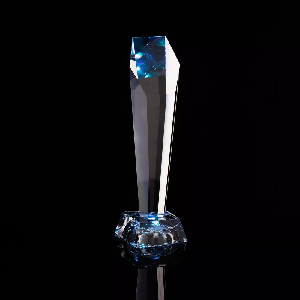 Шестигранная стела с разноцветной подсветкой изготовлена из кристалла К9, в основе которого лежит оптическое боросиликатное стекло.