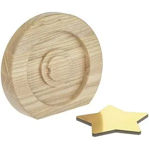 Вставка со звездой из зеркального пластика на деревянной основе крепится на приподнятое основание внутри стелы, что создает объем и многослойность награды. На вставке предусмотрен клеевой слой для крепления после нанесения.