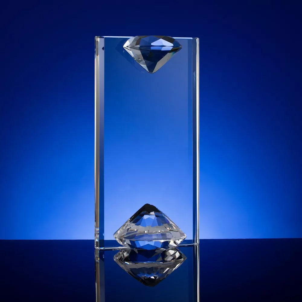 Стела Incrystal — воплощение минимализма, приправленного двумя привлекательными акцентами. Крупные детали в форме эффектных алмазов у основания и в навершии образуют гармоничное единство, олицетворяя сильные стороны, устремленность к единой цели и особую ценность получателя награды. Свет красиво преломляется в гранях этих алмазов, создавая приятный визуальный эффект и добавляя стеле оттенок роскоши.