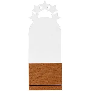 Стела Tribute — это массивное основание из бука с гладкой фактурой и легкая прозрачная вставка из акрила. Идеальный баланс устойчивости и легкости, который важен не только для создания награды привлекательной формы, но и для достижения результата, который этой наградой будет отмечен.