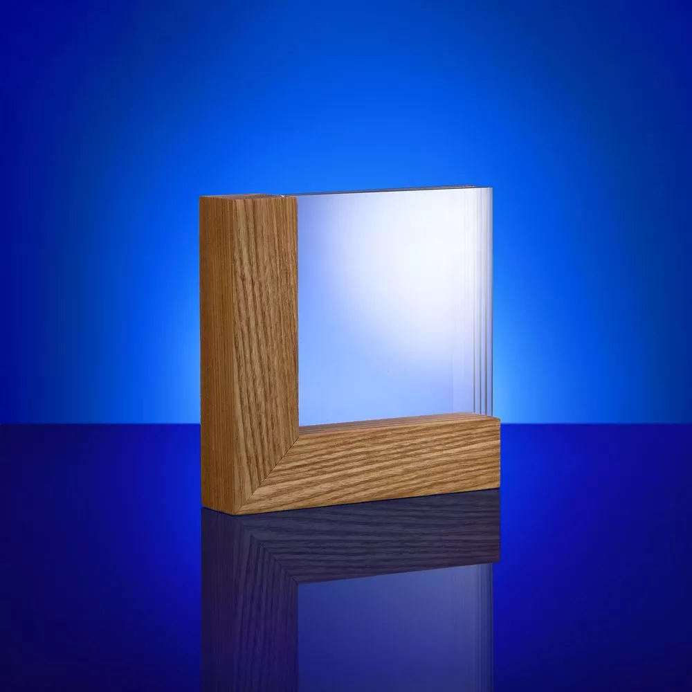Стела Woodlyn объединяет в себе натуральную красоту ясеня и элегантность стекла. Вставки из оргстекла добавляют стеле легкость и изящество. Их прозрачность и блеск создают эффектный контраст с деревянной основой, придавая изделию современный и стильный вид.