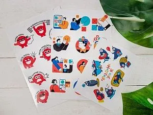 Наклейки формата А5 с ламинацией предназначены для создания индивидуальных стикерпаков под заказ. Стикерпаки (Печать открыток) на данный товар осуществляется бесплатно. Оплачивается только настройка оборудования в размере 630 рублей на весь тираж.