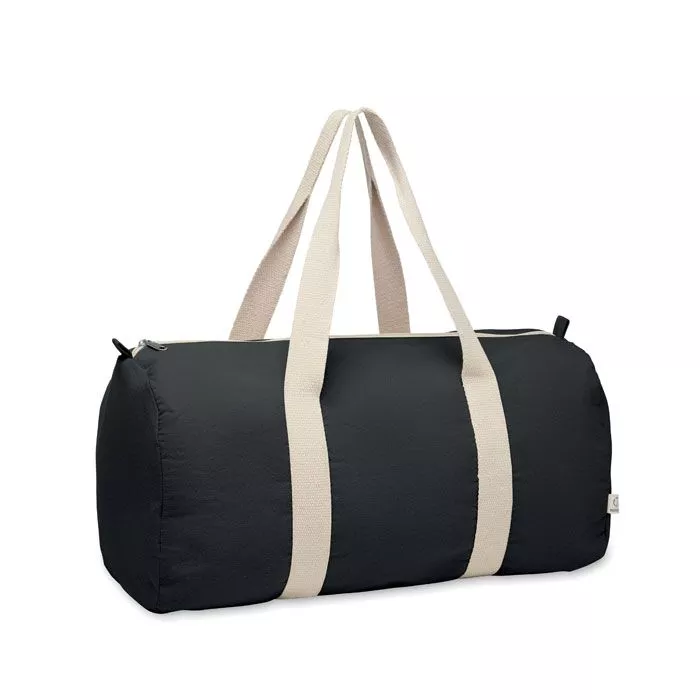Спортивная или дорожная сумка с боковым отделением на молнии и внутренним карманом на молнии из переработанного хлопка (80%) и переработанного полиэстера (20%) плотностью 320 гр/м² с длинными ручками.