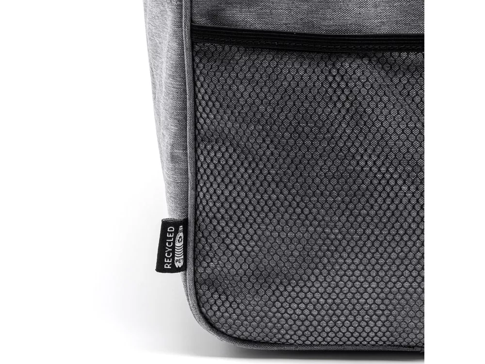 Многофункциональная сумка из RPET 300D с эффектным дизайном. 30 литров. Основное отделение и передний карман на молнии. Сетчатый боковой карман. В комплекте регулируемый плечевой ремень.